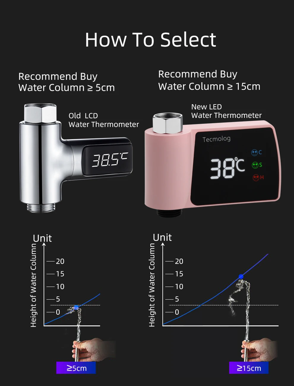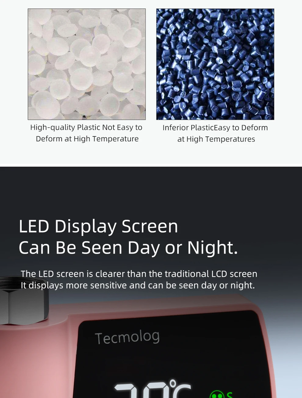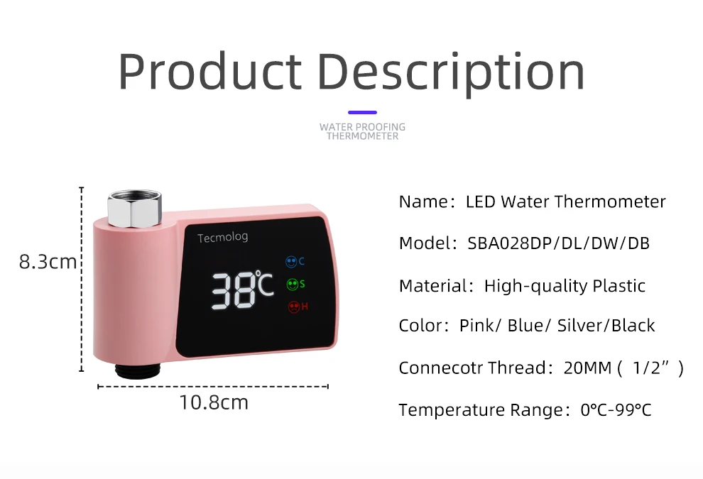 Tecmolog Plastic Led Waterproof Thermometer Pink Water High Accuracy Digital Thermometer for Bathtub Faucet Pink/Blue/Black/Silver