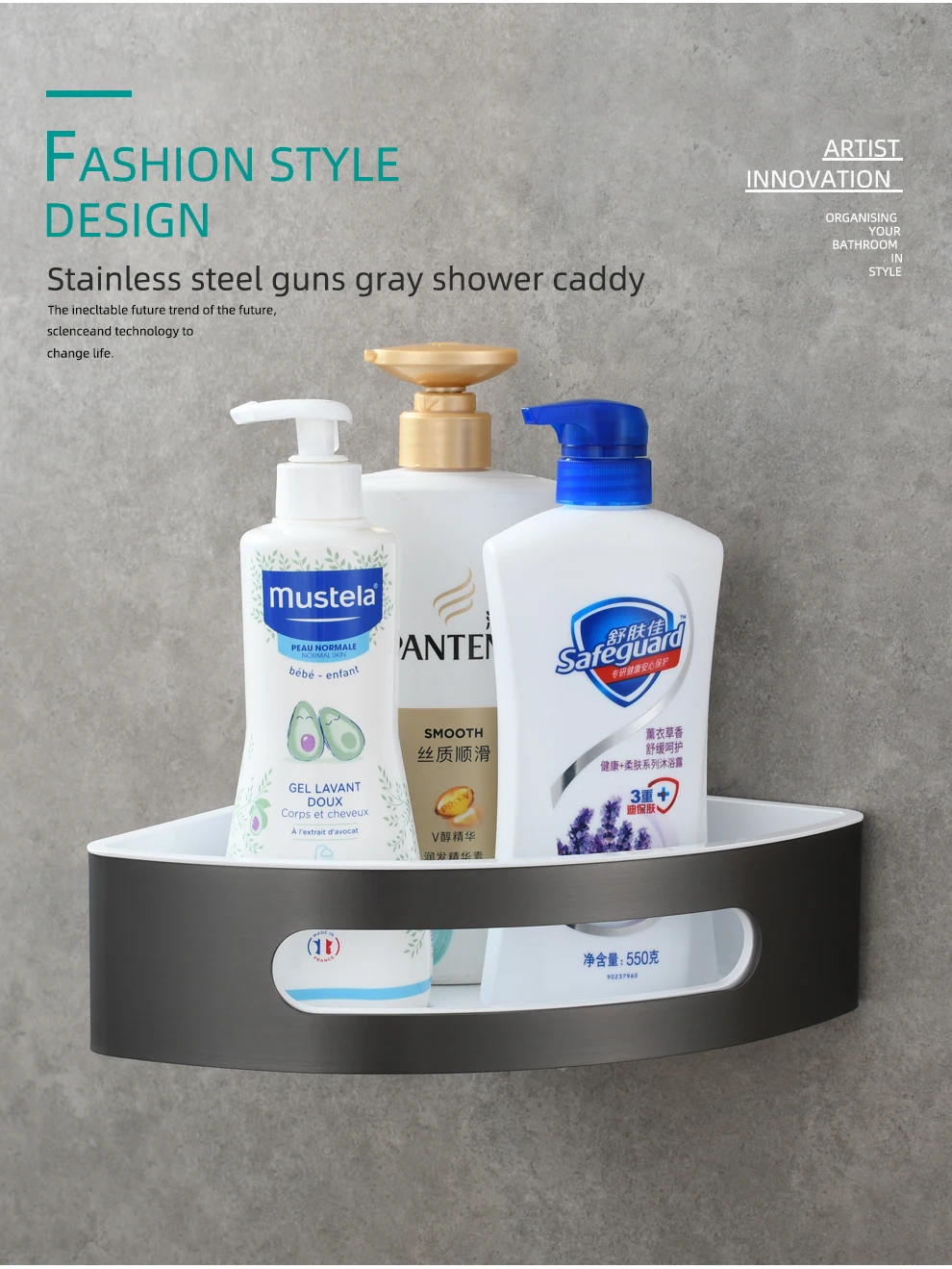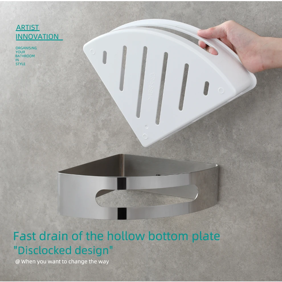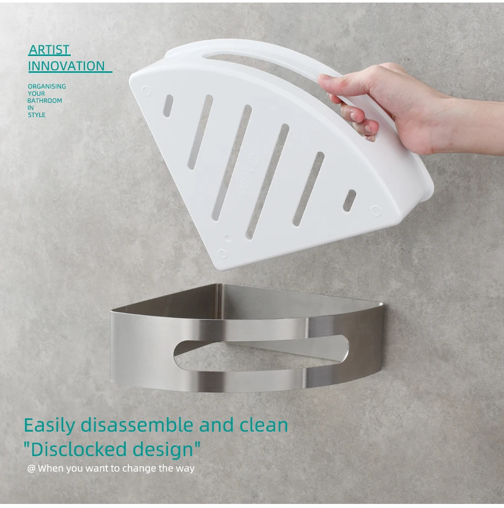 Tecmolog Chrome Triangle Corner Caddy Bathing Platform With Hooks Kitchen Wall Nail Storage For Bathroom SBH189/SBH189J/SBH189B/SBH189NA