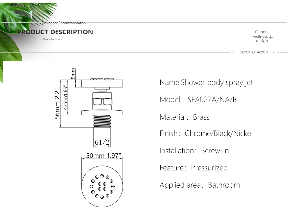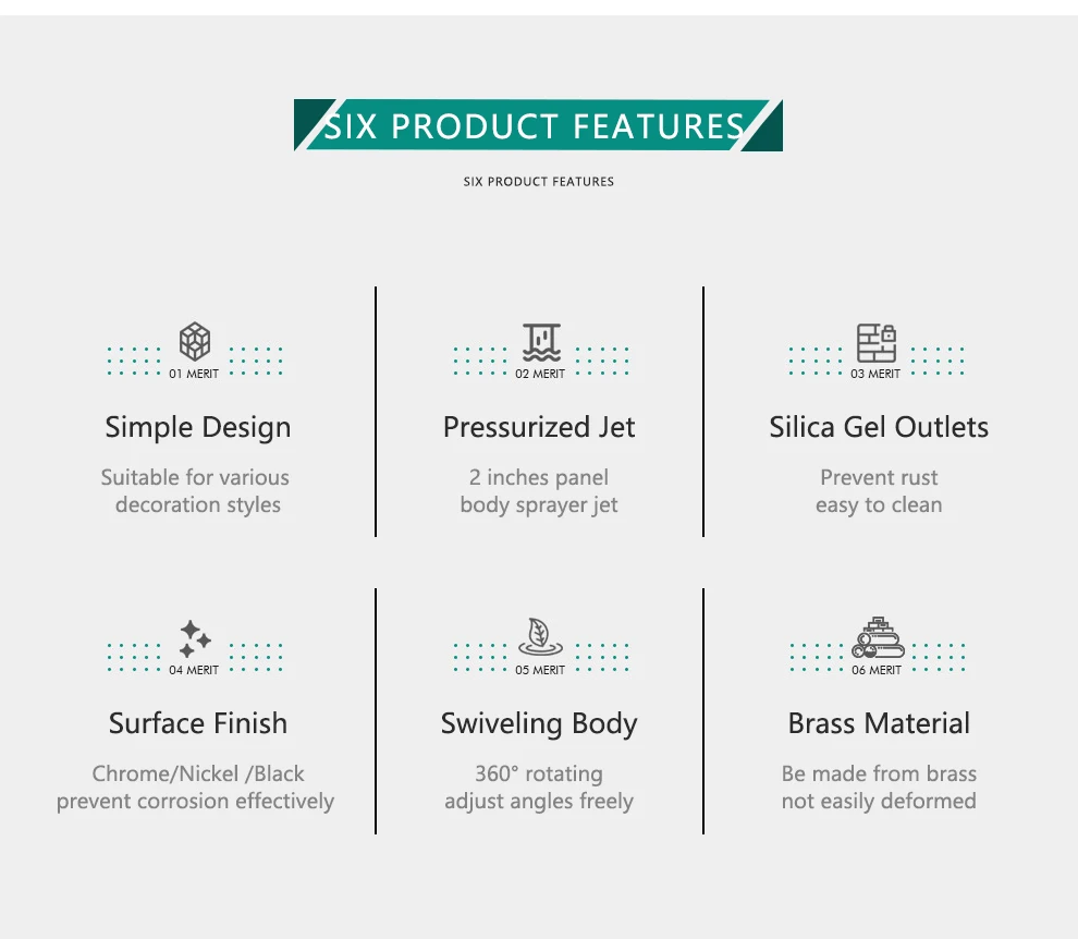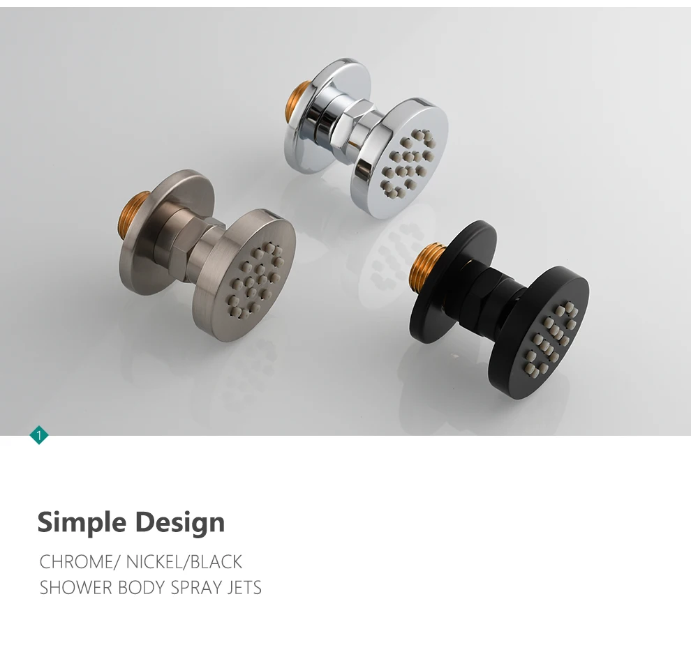 • Tecmolog Solid Brass Shower Jet Round Shower Body Sprays Massage with Brushed Nickel/Chrome/Black Finish Spa Jets Sets Water Saving Wall Mounted Adjustable Shower Head Bathroom Accessories For Shower Set