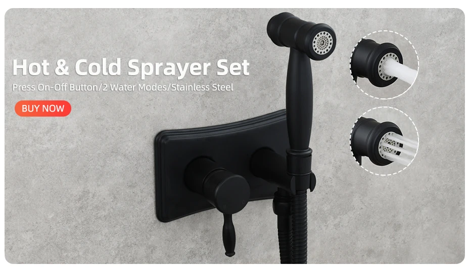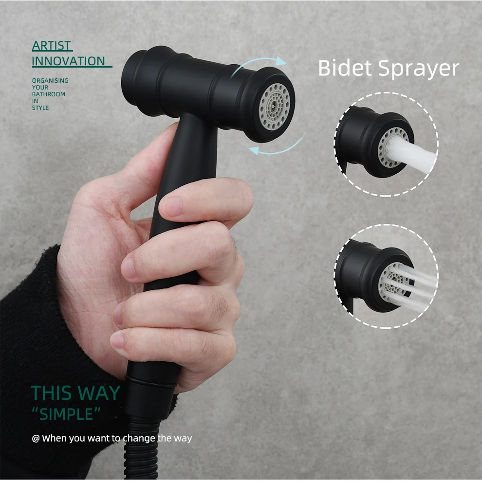 • Tecmolog Handheld Bidet Sprayer Set Stainless Steel Bathroom Cloth Diaper Sprayer Shattaf for Toilet Warm Water, Black/Brushed Nickel